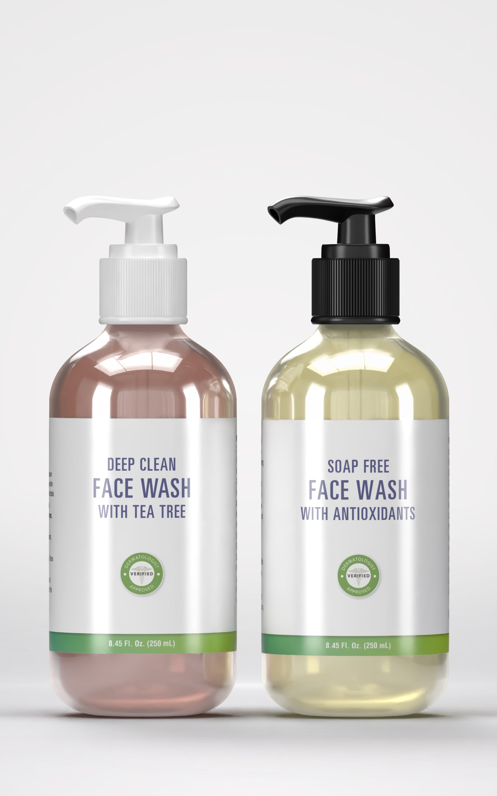 Our Cleanser Sample Pack contains the following:Deep Clean Face Wash with Tea TreeSoap Free Face Wash with AntioxidantsAll samples labels are non customizable.